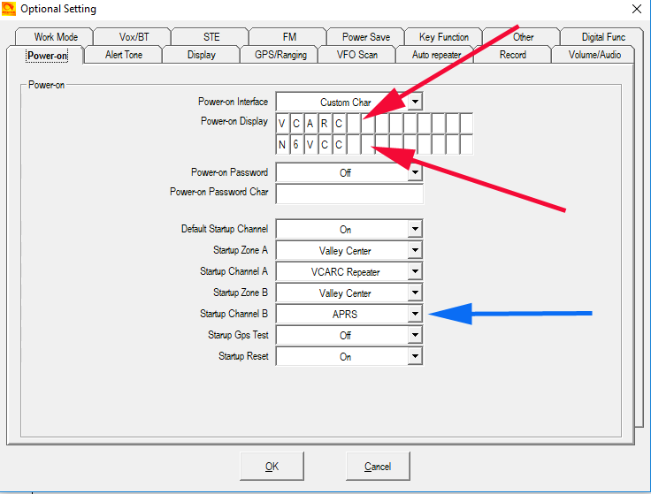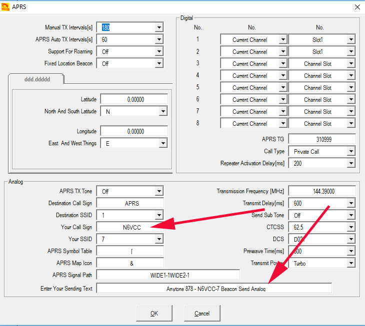 The following screen is displayed. Enter your call sign in BOTH places marked. Don't change anything else at this time. We'll go over these settings at a VCARC meeting.