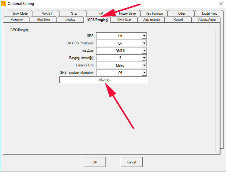 4) Go back to "Optional Settings" / "GPS/Ranging" and enter your call sign. Click OK and exit.