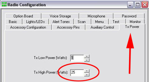 At this point the only three tabs under Radio Configuration are "Accessory Pins", "Tx Power", and "Accessory Configuration".